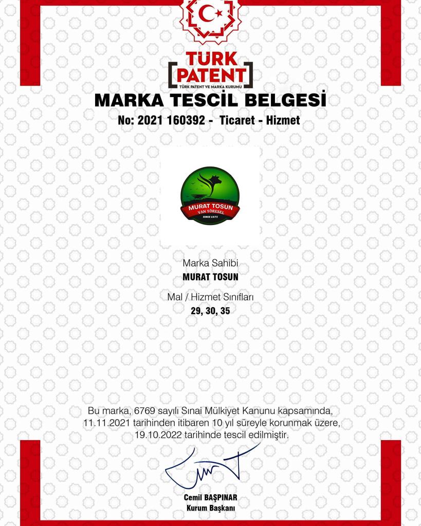 Van Peynirinin ilk tescili markası olan Murat Tosun Van Yöresel Ürünleri 48 yıllık tecrübemiz ile hizmet etmeyi sürdürmekteyiz Müşteri Odaklı kaliteli güvenilir doğal ürün hizmet anlayışı ile her geçen gün kendimizi yenileyip geliştirip müşterilerimize daha iyi hizmet etmeyi sürdürmekteyiz.